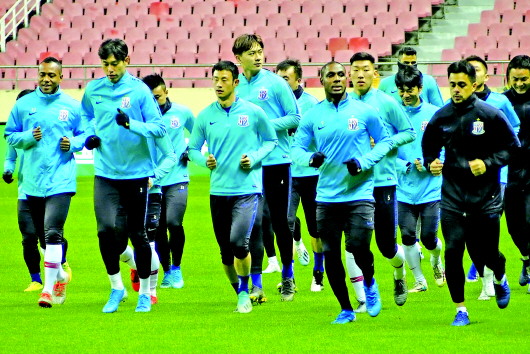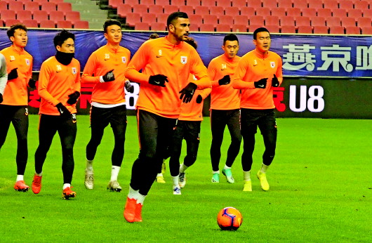 鲁能和申花赛前训练,一场橙蓝大战一触即发。 本版图片均由齐鲁晚报·齐鲁壹点记者 周青先 摄