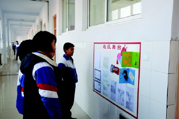 细化校园文化 近日,沂源四中充分利用每一面墙壁,精心构思和布置,打造图文合一的走廊校园文化,让每一面墙都会“说话”。(刘士春 翟乃文)
