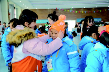 仪式后期志愿者们开始分发温暖包,有的拿出棉袄、帽子、围巾、鞋子等物品,并帮孩子们穿戴整齐,看是否合身。有的孩子穿裤子时脱鞋不方便,旁边的志愿者便细心地半蹲下身子,帮小朋友松鞋带、换衣服。有的孩子穿新棉袄时,衣袖会落地上,志愿者们就帮忙提着袖子穿好,并拉好拉链,孩子们脸上洋溢着幸福的笑容,有穿戴好的孩子手舞足蹈地开心奔跑、与小伙伴们分享着喜悦。