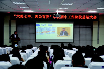 阶段总结 近日,威海七中举行期中工作阶段总结大会,会议分别从小组教学、集体备课、家校沟通交流三个方面邀请学校骨干教师做典型经验介绍,分享老师们在日常教学中的优秀做法。(陈晨晨)