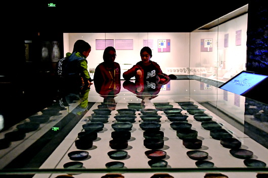 12月14日晚,山东博物馆“山东历史文化展夏商周”展厅内的战国铜餐具吸引观众驻足,这套共达60件的餐具曾经亮相央视《国家宝藏》。自12月14日起,山东博物馆每周六夜间延时开放至21点,为市民奉上夜间文化“大餐”。 齐鲁晚报·齐鲁壹点记者 师文静 摄