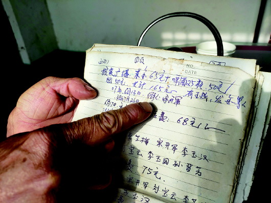齐鲁晚报·齐鲁壹点记者注意到,解玉昌手中的记账单共有14张,较早的年份在2007年,最晚的年份是2016年,有的纸张已经变旧泛黄。