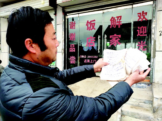 2007年至2016年间,村干部到解玉昌的饭馆打了上百次白条。前两任村支书离任后失联,解玉昌拿着账单不知如何是好。 齐鲁晚报·齐鲁壹点记者 邱明 摄