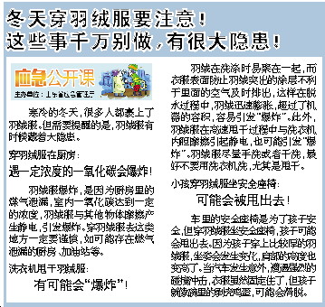 寒冷的冬天,很多人都裹上了羽绒服。但需要提醒的是,羽绒服有时候藏着大隐患。