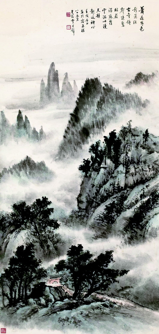 其中,“小书斋”专场延续往场特色,集合了古代、近现代、当代各路名家,风格多元,内蕴浑厚,赏心悦目,精品迭出。除之前提到的清初经学家、文学家毛奇龄的花卉册页、清代诗人边连宝的《随园病余序草之南游草》册页、清宫廷画师屈兆麟的《受天百禄》、吴佩孚的《墨竹》《偷半买十》草书六言联之外,本专场还汇聚了黄君璧的山水精品《萧森野色》。黄君璧是中国现代著名国画艺术家、教育家,与溥心畲、张大千并称为“渡海三家”。黄君璧传统功底深厚,经历了现代中国画的继承、演变、革新的过程,以沉稳朴厚、平实苍拙的笔墨风格自立于艺术之林。晚年大量云海飞瀑之作,在表达个人漫步寻幽、云影自在之意的同时,也切近了现代城市受众的审美诉求,形成其融雅与俗、文人情怀与大众趣味为一炉的黄氏格体。此次上拍的这幅作品约7.3平尺,通过款识可知为黄君璧先生八十五岁时所作,朴厚苍拙,布局隽雅,经黄湘詅女士鉴定为真迹。此外,清末明初画坛巨星金城的山水、沈增植的原装旧裱书法四屏、李鸿章的《觞咏事殊以和得合竹兰气类由清致虚》原装旧裱行书八言联、翁同龢的《材取桢干超凡慧 座绕旃檀生妙香》行书七言联等,都是“小书斋”专场的亮眼之作。