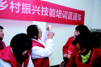 临港经济技术开发区总工会和中粮可口可乐公司的初衷就是希望通过他们的支持,使劳动模范于日芬对当地妇女免费赋能培训,帮助更多村民掌握制作技巧,实现就业增收。