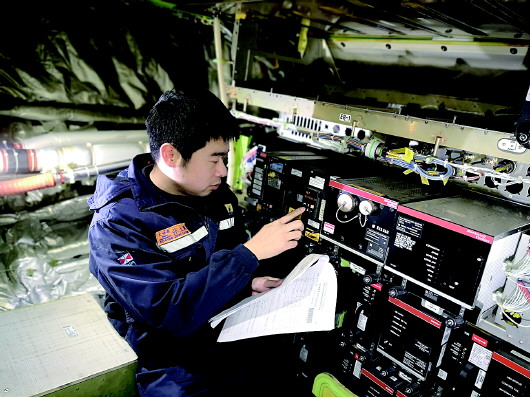 作为山东太古青年一代的代表,张大鹏个人的成长离不开山东太古这个“大学校”,合格的机务人、合格的检验员、合格的基层管理者,张大鹏认为自己在山东太古的经历可以划分为这三个阶段,每一个阶段对他来说都是成长路上不可或缺的一部分,从最初的学习成长,到后来的独当一面,不论是哪个岗位他都学习到了宝贵的经验。“航电专业想要学出来至少需要5年的时间,这5年是打基础、练技术的5年,随着时间、经验的积累,技术逐渐成为基础,很多工作也自然理顺了,此时更多的是一种责任,一种担当。”张大鹏说,“作为一名机务,脚踏实地是最佳的工作态度,从最初的只能承接单机型小定检的工作模式,到完成全球首架(除试验机外)波音737-800飞机客改货项目,从维修外国机型到现在参与国产飞机的维修及保障工作,现在公司承接的业务也越来越多、越来越广,对一线员工的要求也越来越高,我们更应该不忘初心,坚守安全,保质保量的完成工作。”