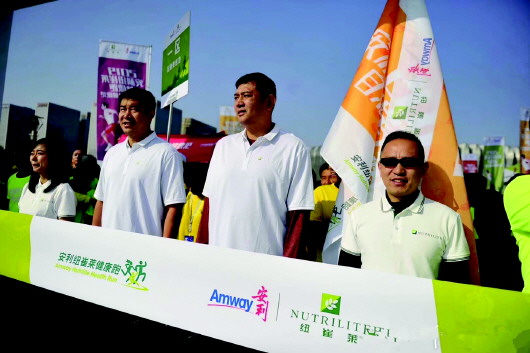 篮球明星巩晓彬以及前山东男篮队长侯冰参与齐鲁晚报地标马拉松系列赛。