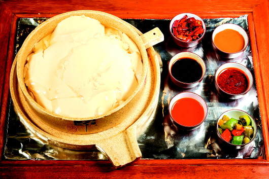 现在的我,虽然身居泉城闹市之中,抬眼看到的到处是鳞次栉比的高楼大厦,富丽堂皇的星级酒店,就连芙蓉街、宽厚里等老街巷的小吃街,也是数目繁多,乱花渐欲迷人眼。可我生就的秉性与饮食习惯,让我这个乡里妹子,时时萦绕在脑海的还是那诱人心扉,馋涎欲滴白嫩、爽滑的商河老豆腐,就像是一个浸淫在血脉中深沉的眷恋和难以忘怀的乡愁情怀!偶尔,也光顾顺河街、大明湖畔的商河老豆腐门面,可是,每每总是寻找不到那静坐在商河老县城一隅,听闻着似曾相识的商河乡音,临窗看着街景品尝老豆腐的那种况味与情愫。有道是:老豆腐是半老佳人,风姿绰约的熟女,难怪是以一种亲切、平和、曲折丰富的内容来吸引你,让你时时牵挂着难以释怀!