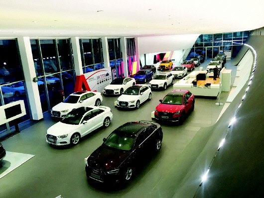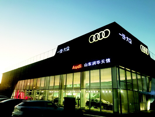 山东润华天信汽车销售服务有限公司是由润华集团股份有限公司投资兴建的标准的一汽大众奥迪新城市展厅。公司总建筑面积11185平方米,展厅为单层结构,结合部为两层,车间为两层结构,同时在车间二楼屋面设立停车区,投资规模近亿元。“奥迪城市展厅”超越了传统的高档汽车品牌4S店模式,是按照奥迪全球最新统一标准设计建成的集品牌体验、车型展示、新车销售、售后服务和二手车置换于一体的经销商展厅。