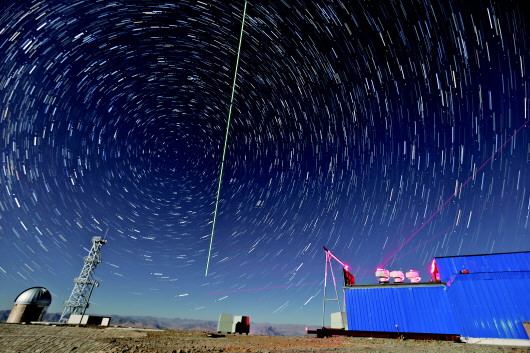 ◥星地高速量子密钥分发是“墨子号”量子卫星的科学目标之一。图为在西藏阿里观测站,“墨子号”量子科学实验卫星过境,科研人员在做实验(合成照片)。  新华社发(资料片)