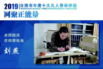 ◤日照市人民医院的病房里,她在两张板凳搭建的“临时课桌”上,借着病房里的灯光批改试卷。
