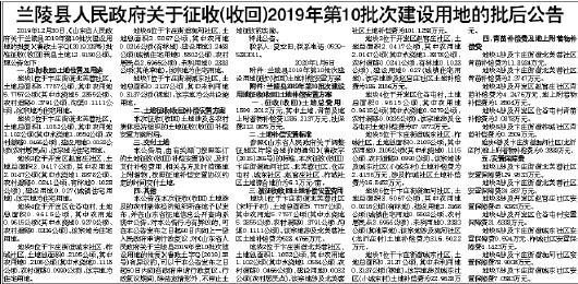 兰陵县人民政府关于征收(收回)2019年第10批次建设用地的批后公告