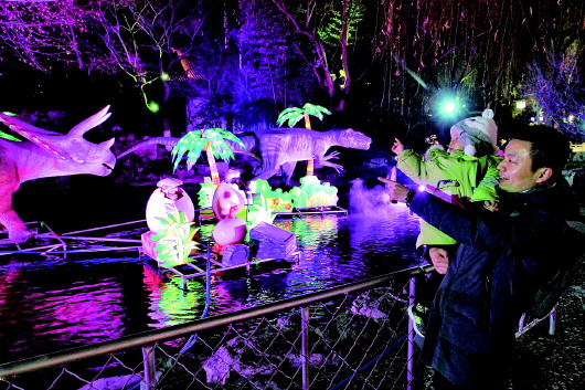 16日晚,不少市民先睹为快,在趵突泉公园抱着孩子观赏调试中的花灯。记者了解到,济南市第41届趵突泉迎春花灯会将于1月25日(正月初一)至2月16日(正月二十三)举办。
