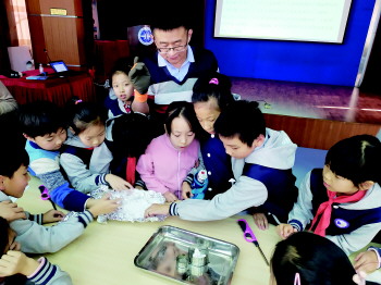 水、火本不相容,但有一种冰块却可以燃烧!1月15日上午,青岛宁夏路小学的同学们来到了青岛海洋地质研究所,开展海洋研学实践,探寻神秘的可燃冰。通过听专家讲座、观察记录及动手操作,孩子们近距离学习了有关可燃冰的相关知识。