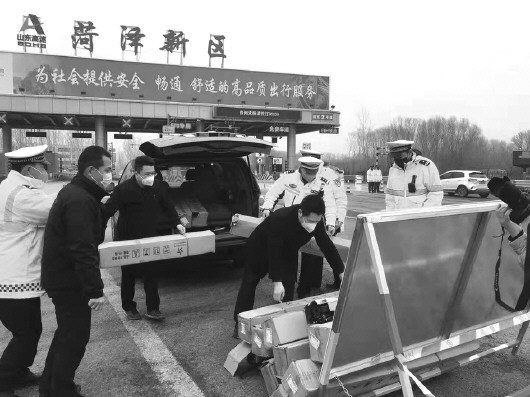 9:30左右,一行人首先来到了新区高速口,为在此执勤的菏泽高速支队一大队带来了20顶帐篷。连日来,他们坚守一线,把好出入关口,无论刮风下雨,都一如既往地坚守岗位。“非常有价值,这是我们在一线执勤交警当前急需的物质,非常感谢菏泽体彩中心的支援,有了帐篷我们就不怕了,之前下雪的时候我们只能在外面站着,再遇到刮风下雪的时候就不怕了。”菏泽高速支队一大队副大队长李顺对体彩中心的捐赠表示感谢。