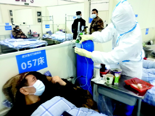 作为赴湖北援助医疗队队员,济南市槐荫人民医院主任医师陈富军从2月11日下午4点进入汉阳方舱医院,开始收治病人。这个由武汉国际博览中心改造而成的“大客舱”最多可以容纳6000名患者。“刚进舱时,我这个老医生也惊叹于它的大,据说是目前武汉规模最大的方舱医院,床位、铺盖等设施布置得都很好,每两张床有一个共用的上铺放东西,微波炉、热水、卫生间都很方便,从这些细节我们也感受到一种必胜的信心。”