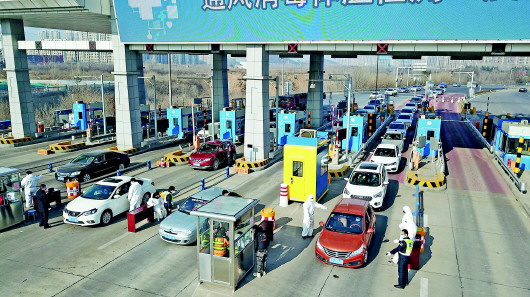在济南东收费站,齐鲁交通作为联防组的成员单位,主要负责高速公路收费站道口的开通和关闭,负责提供出站口车辆信息,特别是来自重点区域的车辆信息。“考虑到有些旅客不习惯使用手机,为了应对客流高峰,我们前期找了好几家银行,准备了不少零钱,这样通过的时候要快一些。”齐鲁交通检查人员说。