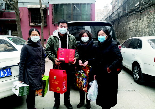 近日,党委书记侯俊平、院长陈玉国、党委副书记林亚杰等院领导分别看望慰问山东大学齐鲁医院第四批援助湖北医疗队队员钟宁、孟繁立、姜园园、房馨及刘淼的家属。呼吸内科党支部为曲仪庆、李昊、于书卷的家属送去牛奶、鸡蛋、蔬菜、水果等慰问品,为张静静、盛东芹在外地的家属寄去了爱心书包、巧克力等。心外科党支部到赴德州抗击新冠肺炎疫情的翟茜及医院援助湖北医疗队员贾荣斌家里走访慰问,带去了粮米油、蔬菜、水果等。东院区外科党组织看望了李颖霞的家人,并带去了医用外科口罩、一次性乳胶手套、酒精、海鲜以及防疫药品。重症医学科党支部到马茜家中慰问,送去温暖。门诊党总支、急诊科党支部分组慰问了医院援助湖北医疗队员家属,分别给医疗队员、省胸科医院刘春利的妻子——齐鲁医院急诊科于丹玉和医院援助湖北医疗队员孙长远的家属送去防护口罩、医用消毒液、新鲜蔬菜、水果以及日常所需的生活用品。检验科党支部为支援一线的护士张睿家准备了慰问品。重症医学科党支部、普外科党支部分别向马茜、李颖霞家中邮寄了慰问品。医院工会配合相关部门为医疗队员发放慰问金、慰问品。普外二支部将大米、花生油等生活物资分别快递给徐琪、刘珊、毕荣梅3位队员的家属。医院第四批131名援助湖北医疗队员出发没多久,各级党组织对他们家庭的走访慰问工作已在进行中……