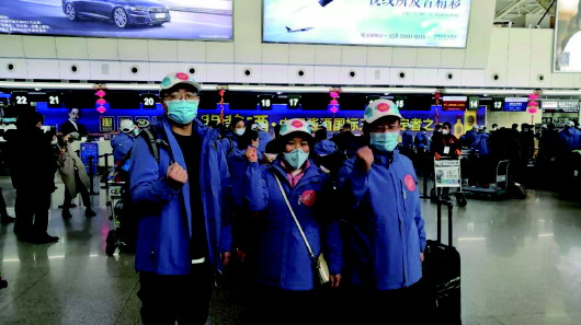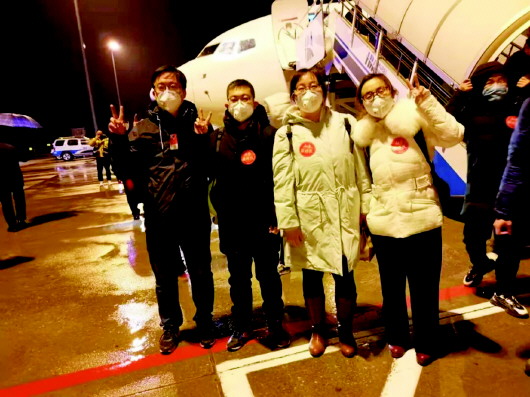 山大二院第一批援湖北医疗队队员到达武汉天河机场