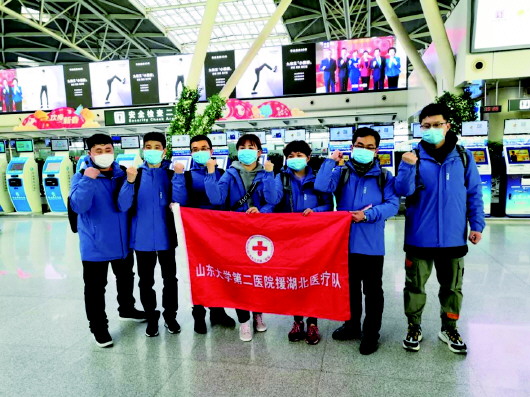 此前,根据山东省卫生健康委统一部署安排,山东大学第二医院已先后派出三批共14名医务人员奔赴湖北,分别于1月26日凌晨、1月28日晚和2月2日晚抵达湖北。截至2月13日,第一批队员已在湖北奋战19天。