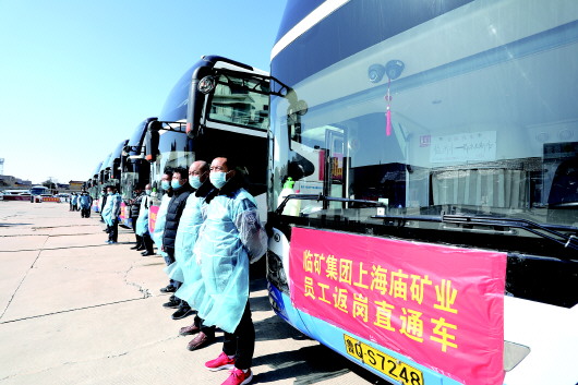 2月17日,临沂开通至鄂尔多斯职工返程复工专线,将189名管理骨干和采掘一线员工送抵内蒙古上海庙矿区。当天,威海市环翠区也派出定制包车,将家住菏泽市的7名工人接回威海复工。连日来,我省多地已经采取“点对点、家到厂”的方式,陆续为职工返程开辟绿色通道。18日、19日,山东接连出台相关举措助复工、保就业。 齐鲁晚报·齐鲁壹点记者 刘相华 通讯员 崔鑫 徐虎 摄