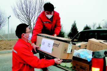 本报2月19日讯(记者 邵芳 通讯员 赵强) 2月9日下午2时,驻地设在滨州市的滨南采油管理区两辆皮卡车,在滨州和东营交界处相隔400米的路卡间来回跑了三趟,顺利将鲁明公司西部油区4家采油管理区所需防疫物资从东营运到滨州。交接完成后,将物资运抵到交界处的东营人员、车辆返回驻地,滨南采油管理区对物资进行消毒后,再运往滨州和济南交界处,采用相同的流程,让防疫物资实现“接力跑”。