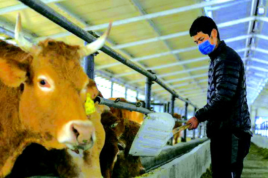 2019年,王玉磊从山东畜牧兽医职业学院毕业,应聘到基地成为一名技术员,每天跟这里的300多头牛朝夕相伴。早晨5点起床巡查牛圈,观察每头牛的生长发育情况,并做好登记。