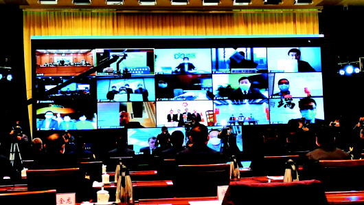 和往日不同的是,这次的签约创新性地用“屏对屏”取代了“面对面”,会议室的大屏幕上,几个分屏上显示着各参与城市和签约企业的分会场,屏前屏后,大家都默契地戴好口罩。没有密集的人群,就连会议室座位的摆放都隔着一段距离。“在防疫的形势下,这是我们对招商引资一种新方式的探索。”张军说,“我们做了一个统计,目前全市投资促进系统一共组织了二十多场屏对屏的招商推进活动,也推进了一批项目来落地。”