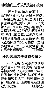 今年以来,沂水沙沟镇扶贫办联合审计站、财政所、经管站等相关站所,认真梳理2016年以来所有的扶贫资金,从规范扶贫资金和项目入手,加强审计监管,规范管理,坚决杜绝违规违纪行为发生。 (王淑君)