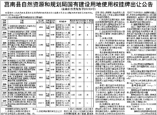 经莒南县人民政府批准莒南县自然资源和规划局决定以挂牌方式出让10(幅)地块的国有土地使用权。现将有关事项公告如下: