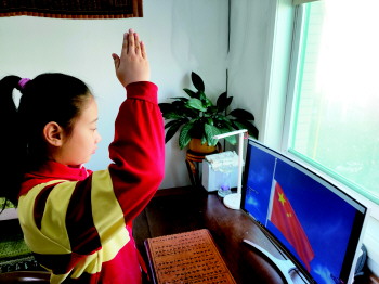 线上升旗仪式,接受爱国主义教育。