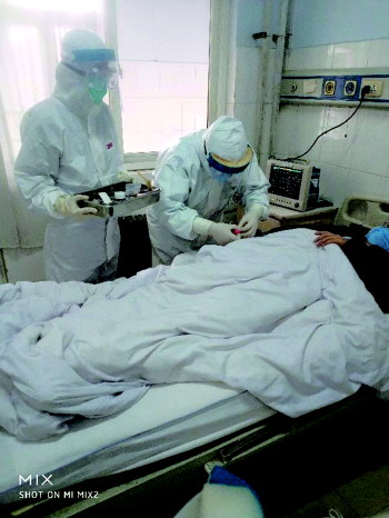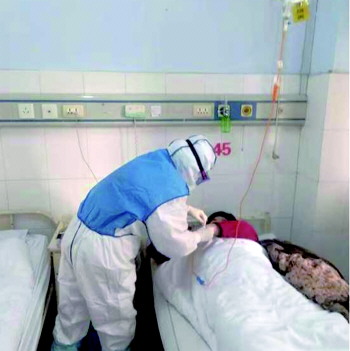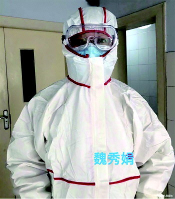 进入隔离病房,一扇门连着两个世界。工作中的她,抛开一切恐惧,为了尽快寻找诊断依据,她协助病人深部排痰,采集咽拭子,因为这是最有价值的标本,同时,这也是最危险的工作。因为没有人知道采集的标本中有多少病毒,过程的艰难和风险不言而喻,魏秀娟和同事两个齐上阵,穿着笨拙的防护服,平日里轻松搞定的事情,此刻变得格外艰难。完成配药,各种链接,雾化结束,由浅入深,持续拍背,不断的言语鼓励和安慰,终于随着一阵剧咳,取出了想要的标本。