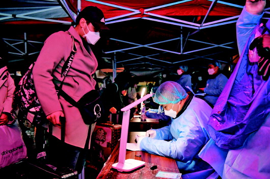 市中区一线工作人员坚守在分流点上。 市中区供图