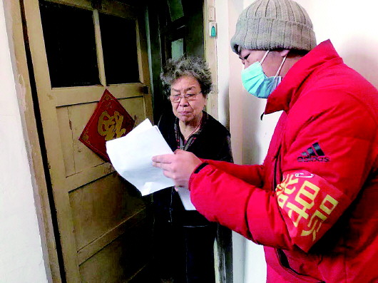 市中区网格员上门给居民讲解防疫须知。 市中区供图