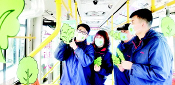 在植树节来临之际,青岛公交集团李沧巴士公司志愿者积极开展进社区帮果农种树等活动,志愿者还用“绿树”装饰车厢和赠送“绿树口罩”的方式打造植树节主题车厢。