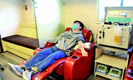 柳奇在山东省立医院东院区捐献血浆。 受访者供图