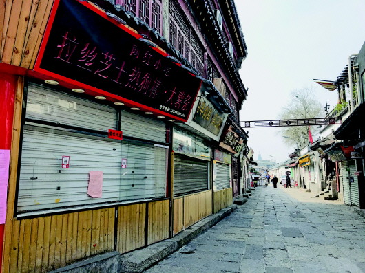 3月13日上午,济南市两大网红美食街芙蓉街和宽厚里在封闭46天后同日开街,不少市民前来“尝鲜”,却发现开业的商铺并不多。