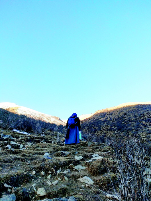 每天爬到山上学习,藏族女孩土姆拉增都要带上一天的食物和水。
