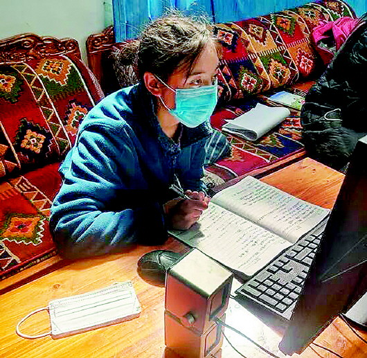 “如果是日常交流,家里的网还可以,但看视频就不太行,一直会卡顿。”土姆拉增说,第一天上网课时,因为信号一直不稳,老师上课的内容她听得断断续续。跑了好几个地方,都不能满足上网课的需要,她想,山上的信号能好点吧?于是,她一路走、一路试,走了40分钟山路,快到山顶时,终于收获了惊喜,视频中,老师的画面开始流畅清晰。