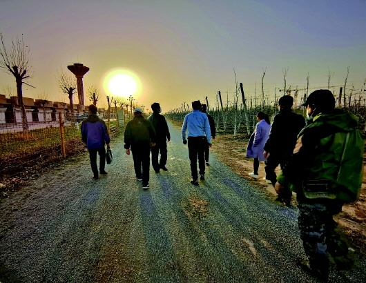 苹安耶果农业公司仅苹果种植面积就达3000亩。李林光和王海波给公司的技术员详细讲解了春季嫁接砧木高度、修剪方法和技巧。他说,修剪是苹果种植的重要环节,往年山东多在2月底前完成,今年必须赶在3月上旬完成,如果晚了,今年的产量就大打折扣。