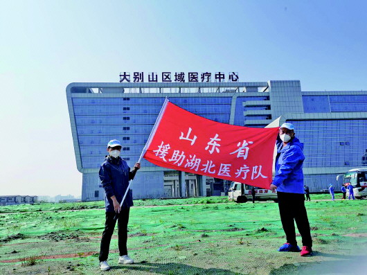 1月25日,山东首批援助湖北医疗队星夜驰援,1月26日凌晨两点赶赴黄冈。1月28日晚,在首批医疗队正在等待收治患者的时候,山东第二批援助湖北医疗队也抵达“战场”。2月15日下午,山东省第十一批援助湖北医疗队从济南遥墙机场出发……山东一批批医疗队的到来,给黄冈大别山区域医疗中心注入了新的生机。