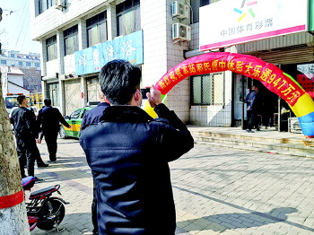 “春风贺喜无言语,排比花枝满杏园”。3月17日一大早,位于潍坊昌邑市北海路盐业公司对面的体彩投注站前竖立的拱门和醒目的条幅正在向过往行人和周围的居民传递着大奖喜讯。中奖站业主王芳一早就来到了店里,第一件事就是开窗通风,把站点里里外外全方位的进行清洁消毒,测温枪,登记表准备好,免洗洗手液和消毒湿巾也摆放整齐方便购彩者取用。王芳表示:“昨晚得知了中奖的消息后,激动的我一晚上没睡着,考虑到今天进店的人会比平时多,我一早就来通风、消毒,中出大奖当然开心,但疫情防控这根弦也得时刻绷紧。”布置好店内外,陆陆续续有购彩者进店,面对热情的购彩者,王芳不忘提醒一句:“沾沾喜气好运来,即买即走保持距离。”为防止购彩者扎堆“沾喜气”,昌邑体彩办的工作人员也早早赶过来,帮助王芳做好进店人员登记工作,严格控制进店人员数量。