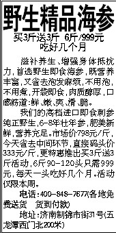 我们的高档进口即食刺参纯正野生,6-8年壮年参,肥美新鲜,营养充足。市场价798元/斤,今天省去中间环节,直接码头价333元/斤,更特惠推出买3斤送3斤活动,6斤90-120头只需999元,每天一头吃好几个月。活动仅限本周。