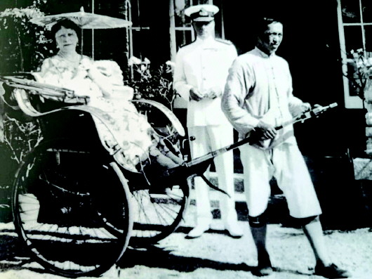 英国驻刘公岛海军军官及其家属,凡出门办事或游玩,均以车代步,有的是乘车去东泓打“高尔夫”、看打靶,或是乘车岛游,个别的还有乘人力车举行婚礼的,还有的组织乘车赛跑的。这些拉车人被称之为“洋车夫”。“洋车夫”为了养家糊口,只能唯英国官兵之命是从。