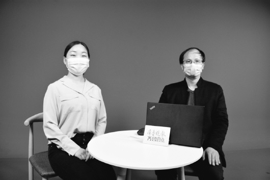 山东商业职业技术学院教务处处长曲文尧(右)做客“悦读大学”直播间。
