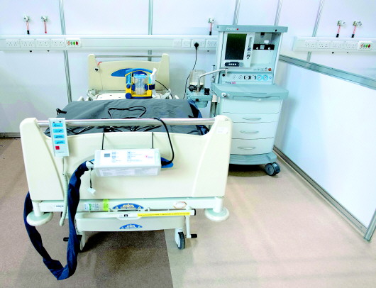 3月30日,在英国伦敦,ExCel会展中心被改建成拥有4000个床位的临时医院,这是医院内配有呼吸设备的病床。 新华/路透