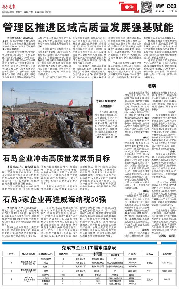 第WR03版:荣成资讯·关注