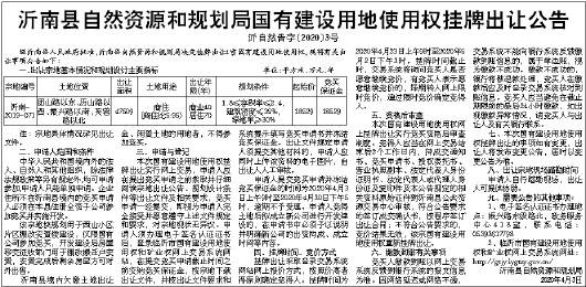 沂南县自然资源和规划局国有建设用地使用权挂牌出让公告