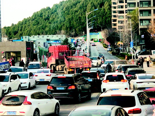 “隔离护栏丢失后,这里就像赶大集,业主出小区很费劲。”壹粉何云说,丢失护栏的草山岭西路南头距离经十路很近,没有了隔离护栏,很多车辆混行,乱停乱放。草山岭西路上有俩工地,复工复产后车辆来往很多,尤其是大车。